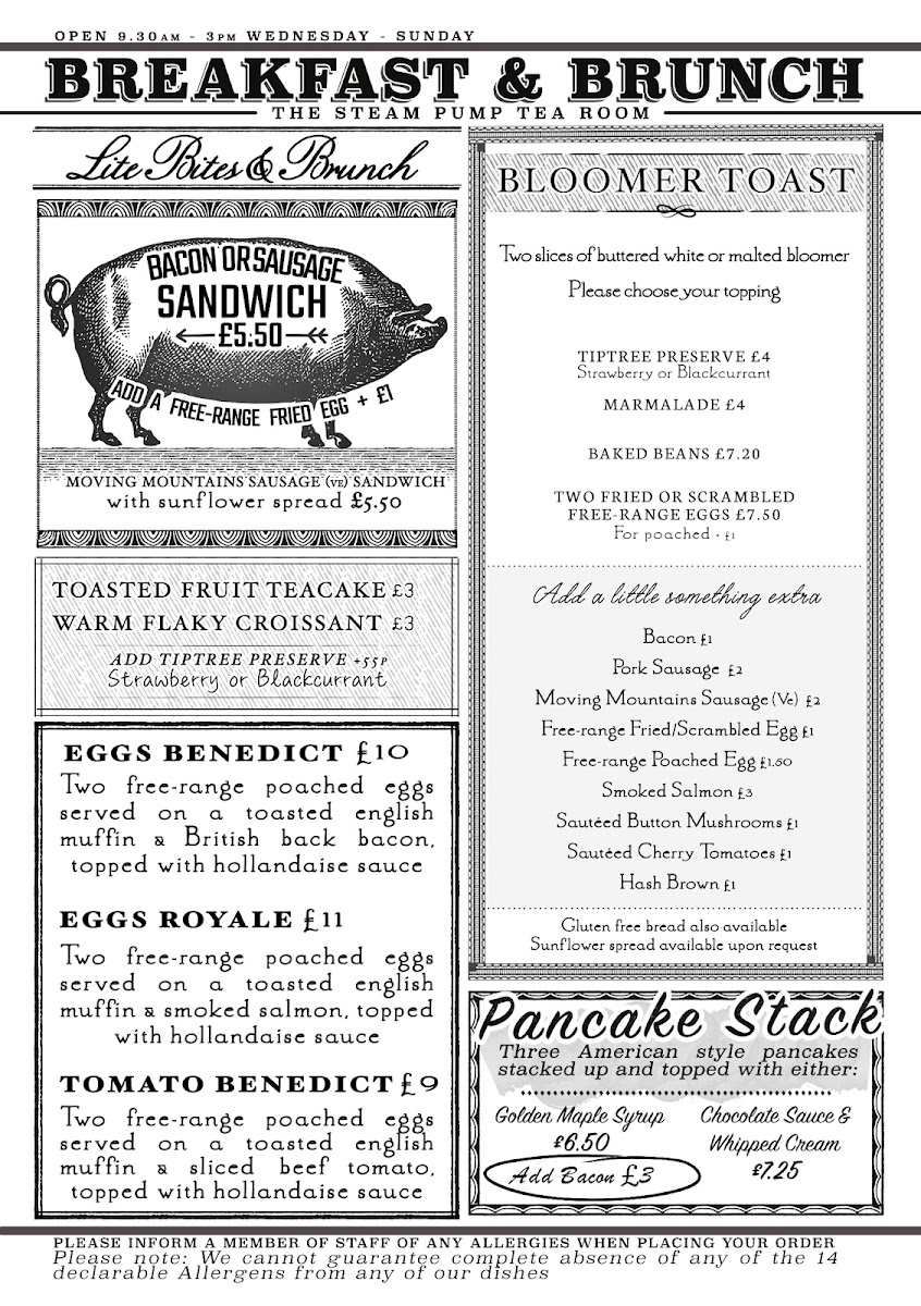 The Steam Pump Tea Room Menu